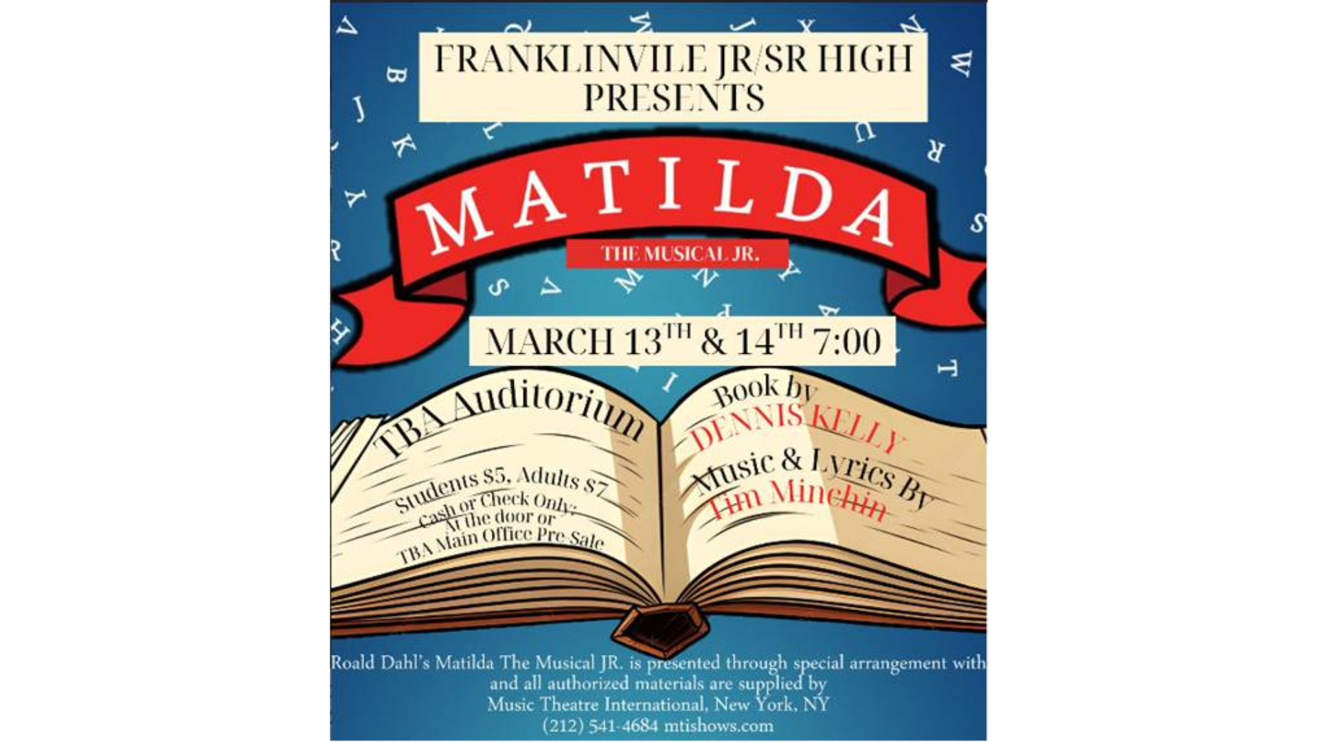 Date Recent Thu, Feb 12, 2026, 9 - 10:30am Interested residents who have signed up will have the opportunity to go watch Franklinville's production of "Matilda". Campus Machias Campus
